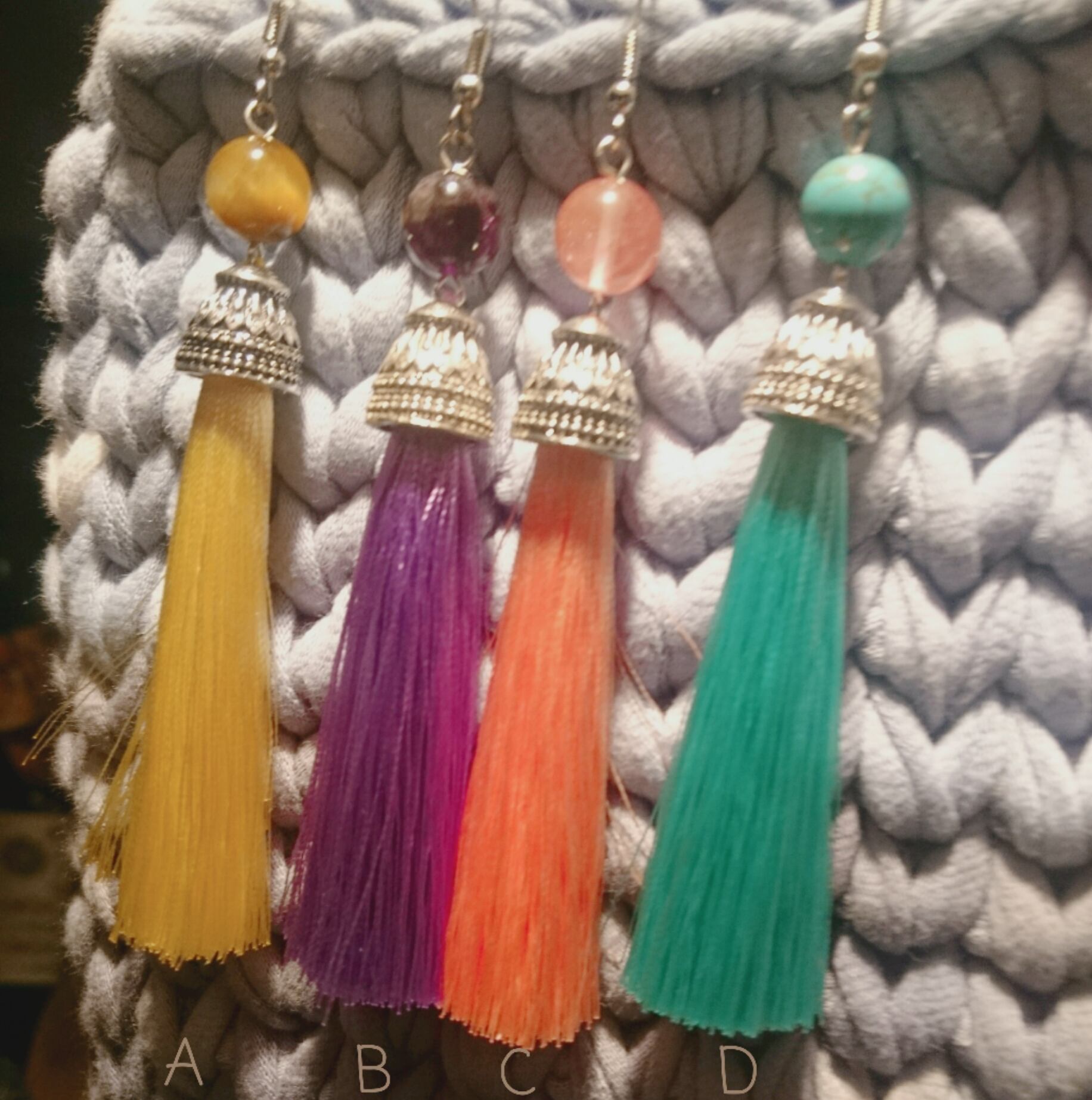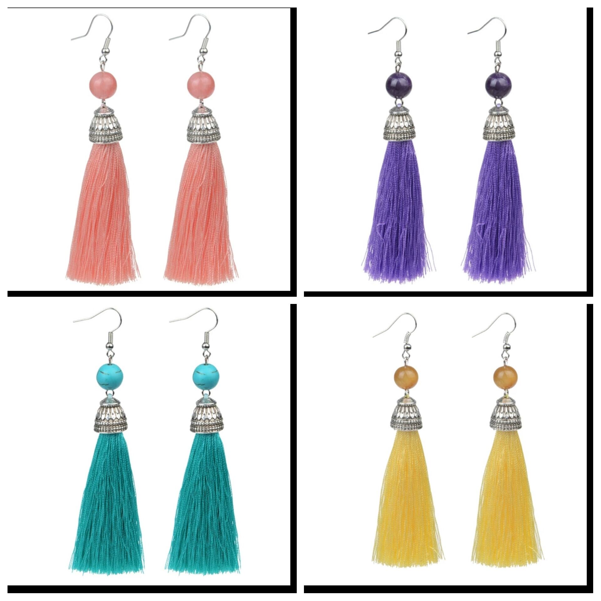アジアンタッセルピアス 10mm珠天然石 フリンジピアス