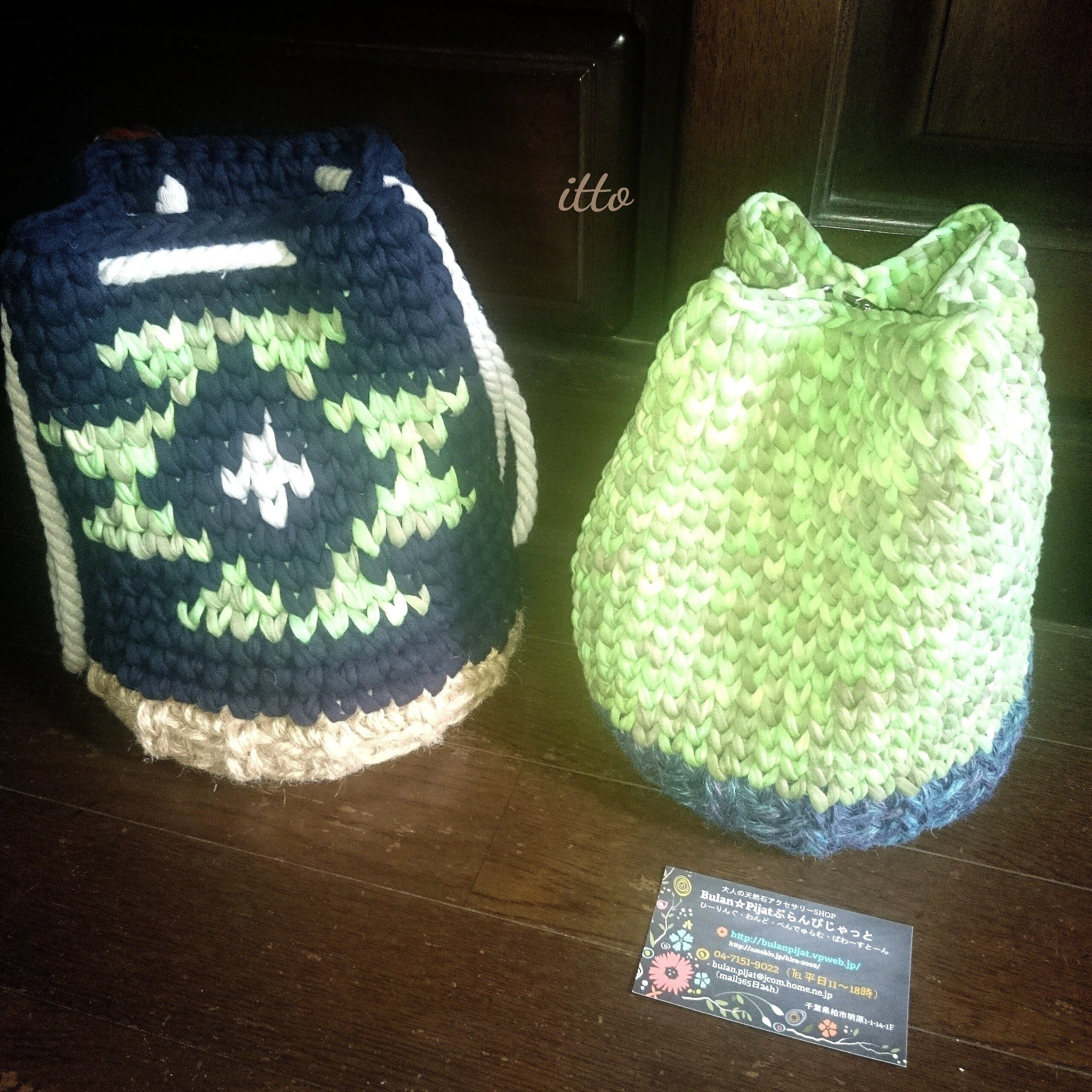 2wayバッグオルテガ柄 イットヤーン手編み巾着バッグ Tシャツヤーン