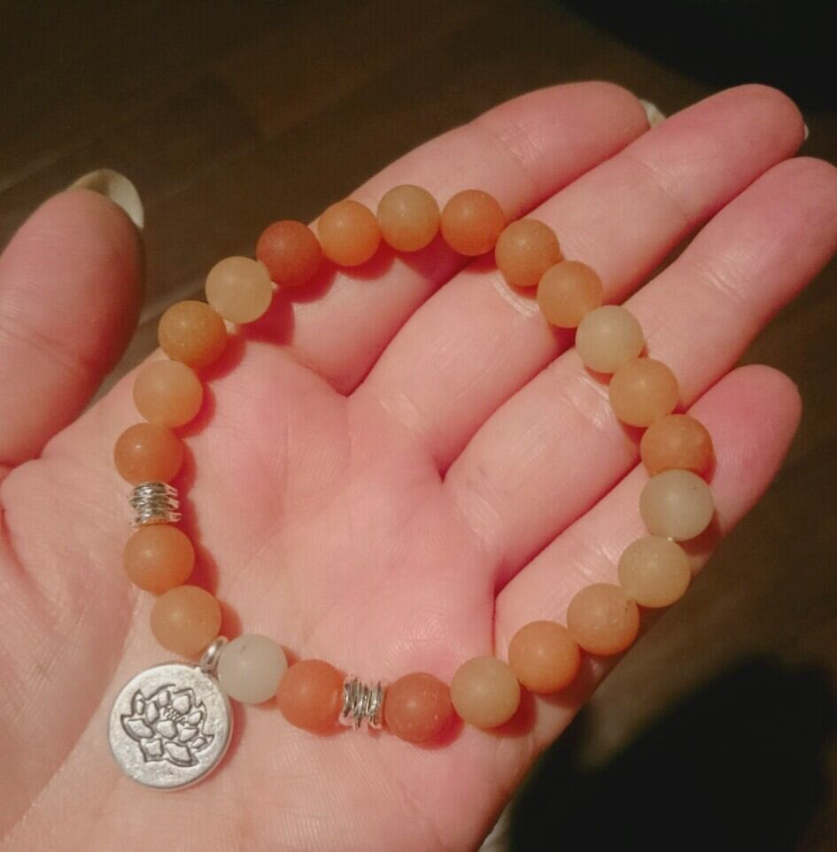 つるつるのアマゾナイトやカーネリアンではなく、磨りガラスやシーグラスのような少しザラつきのあるマット加工のブレスレットです