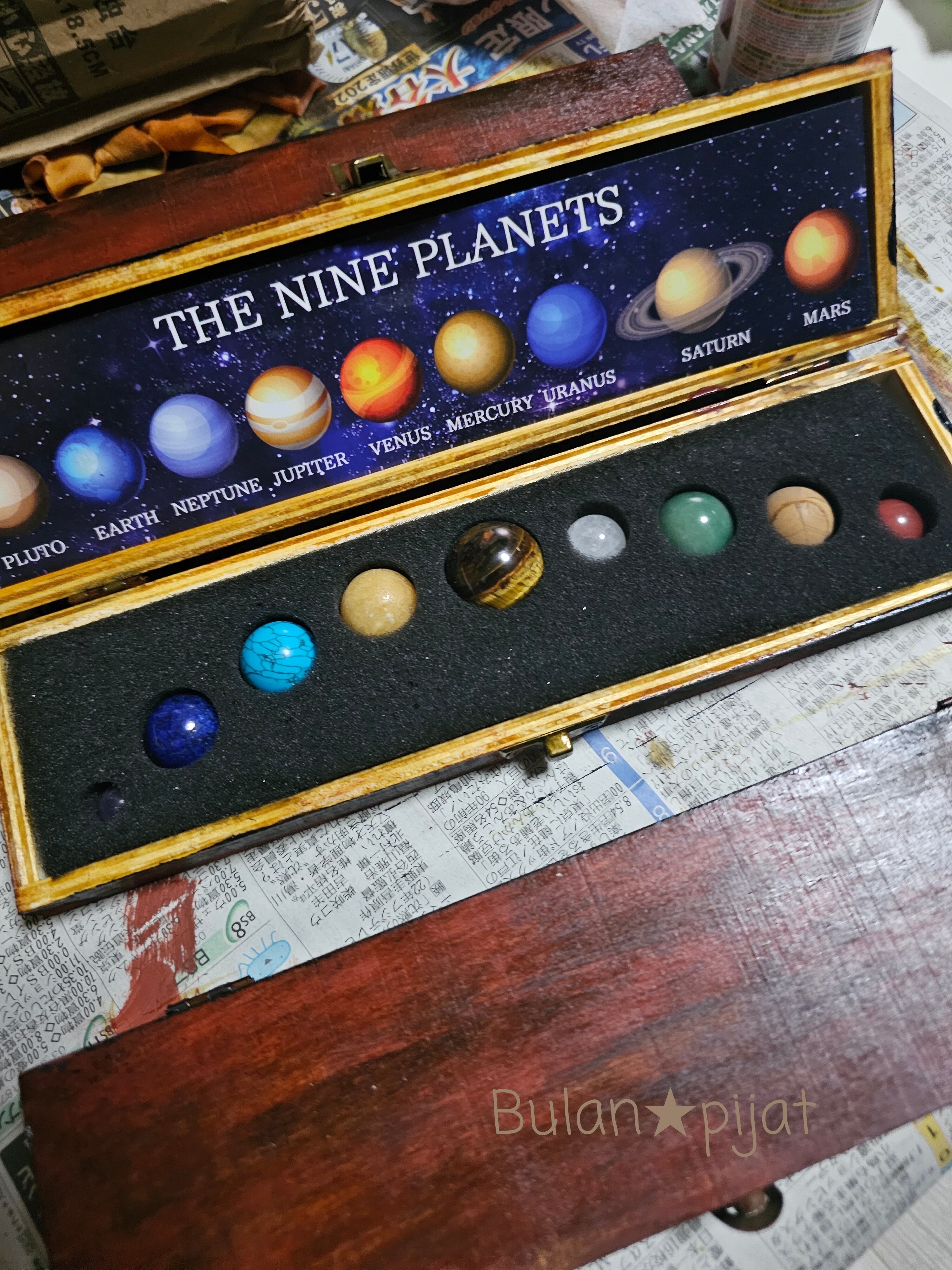 レトロ木箱 宇宙天然石 眺める台座付き 宇宙セット