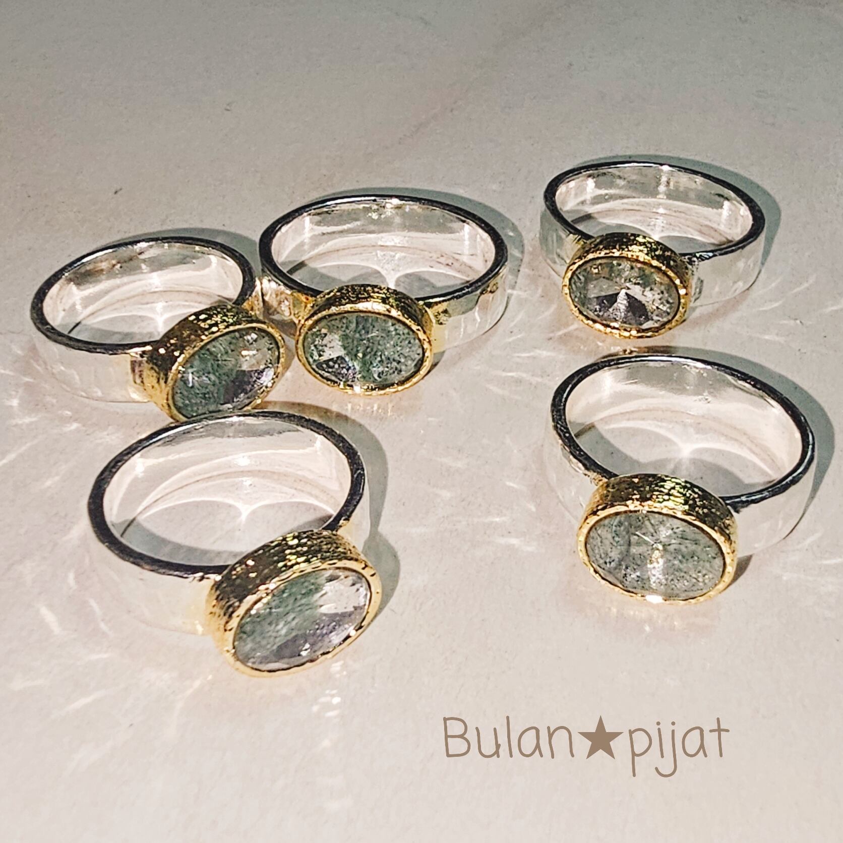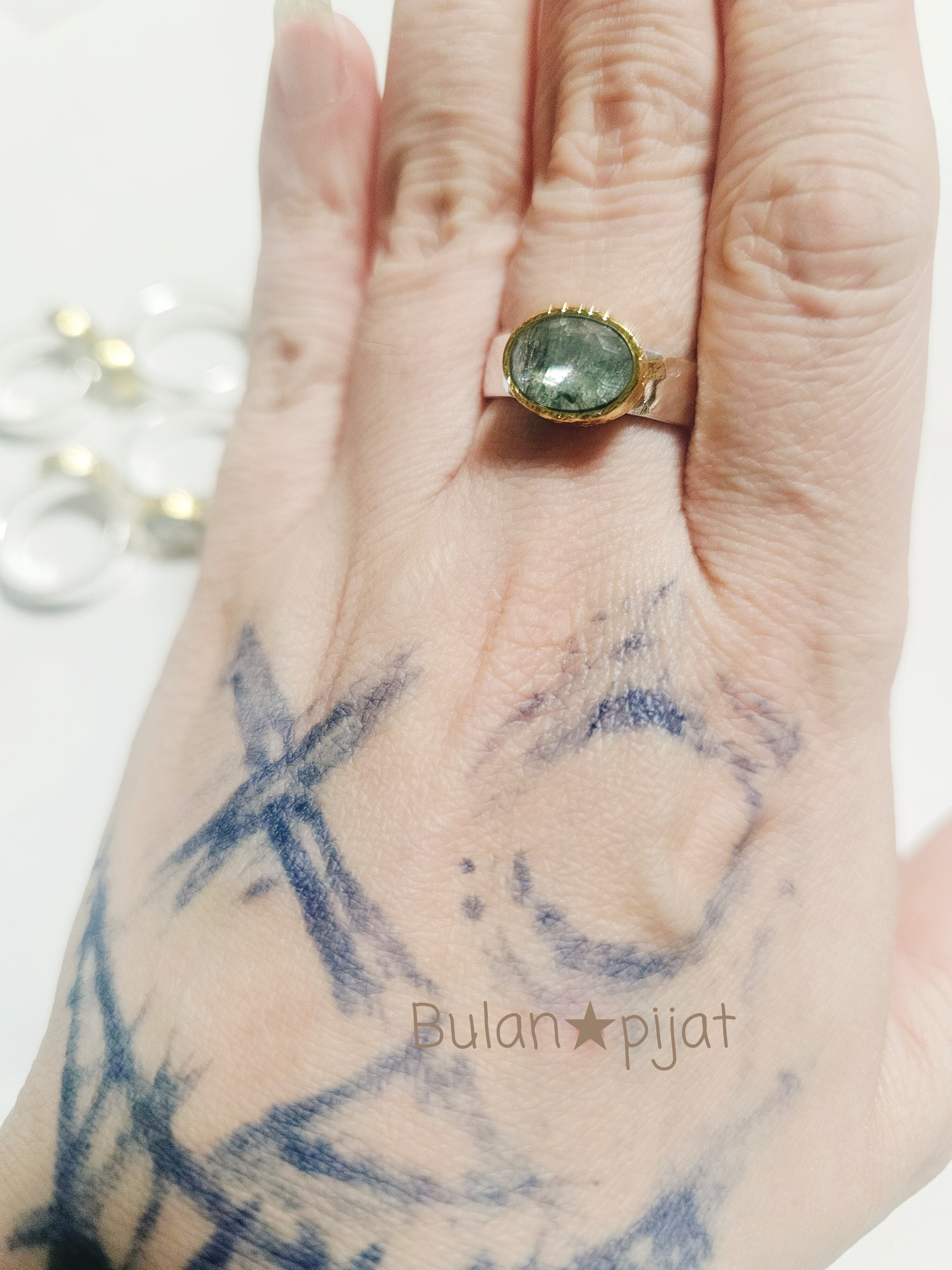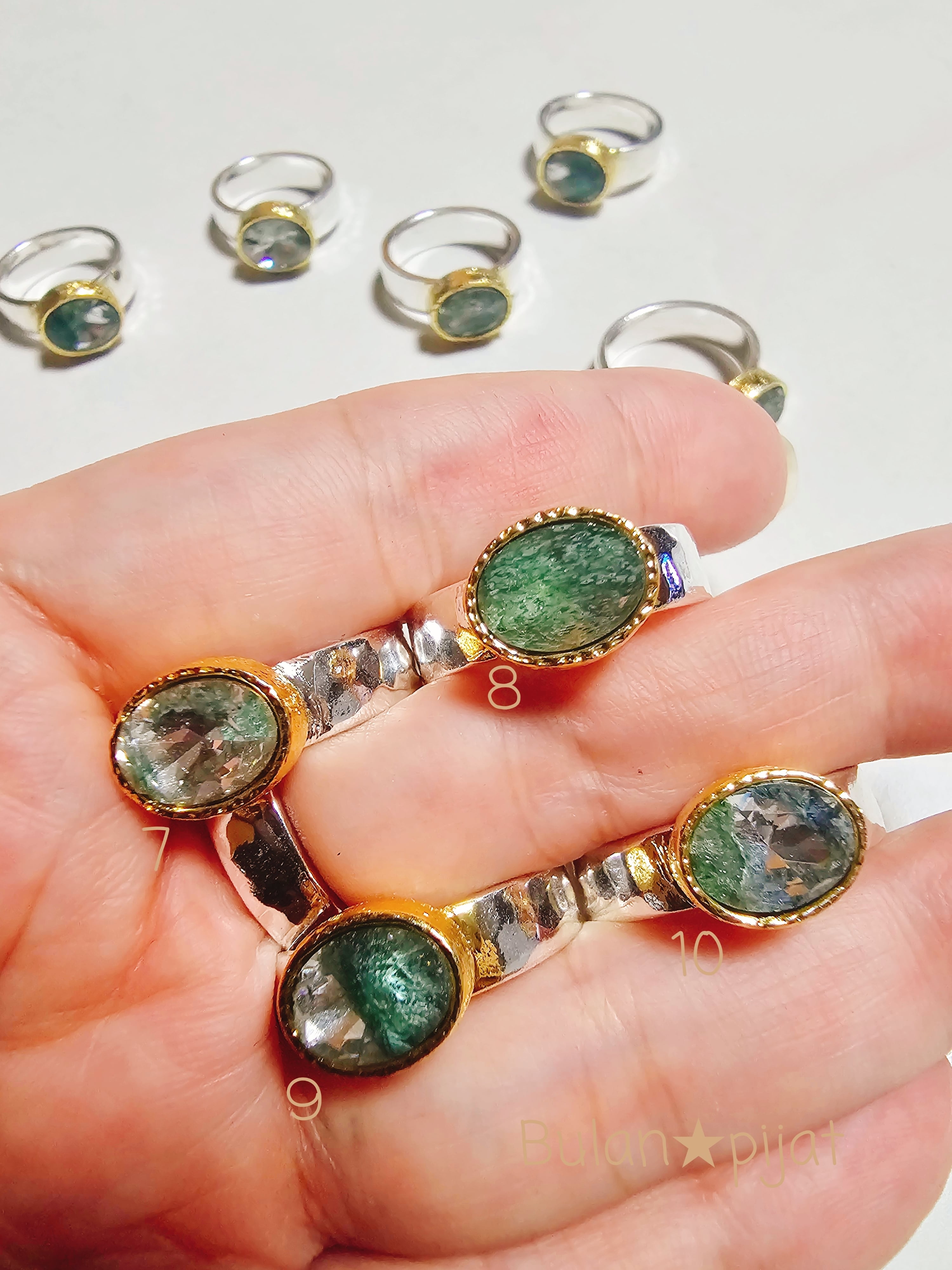 グリーンエピドートインクォーツ リング 水晶の中に緑の天然石入り指輪