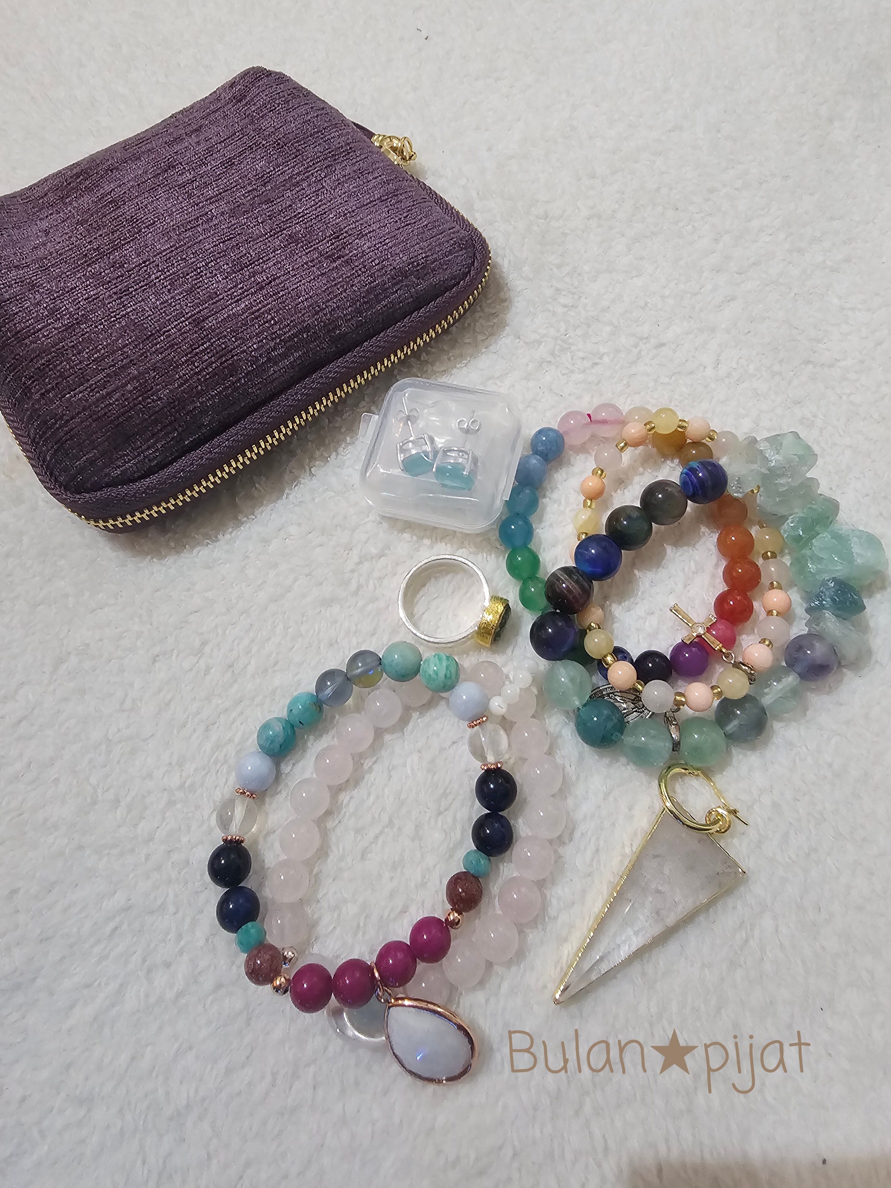 もちろん天然石ブレスレット5本、リング1、ピアス2セット、入りチャックも閉まりました