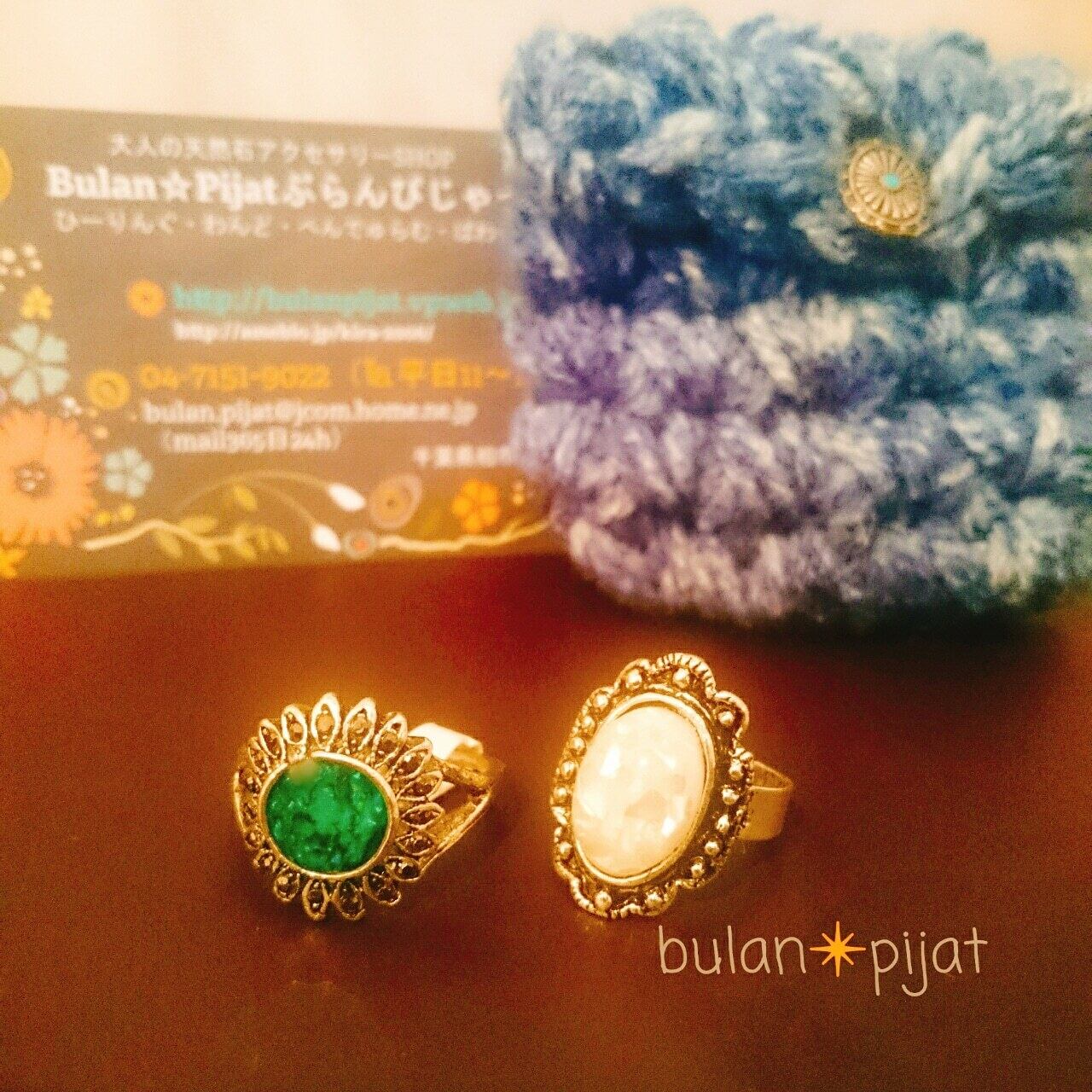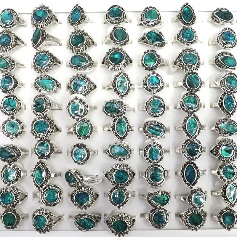 エメラルドブルーの天然パウアリング シェルリング 貝の指輪