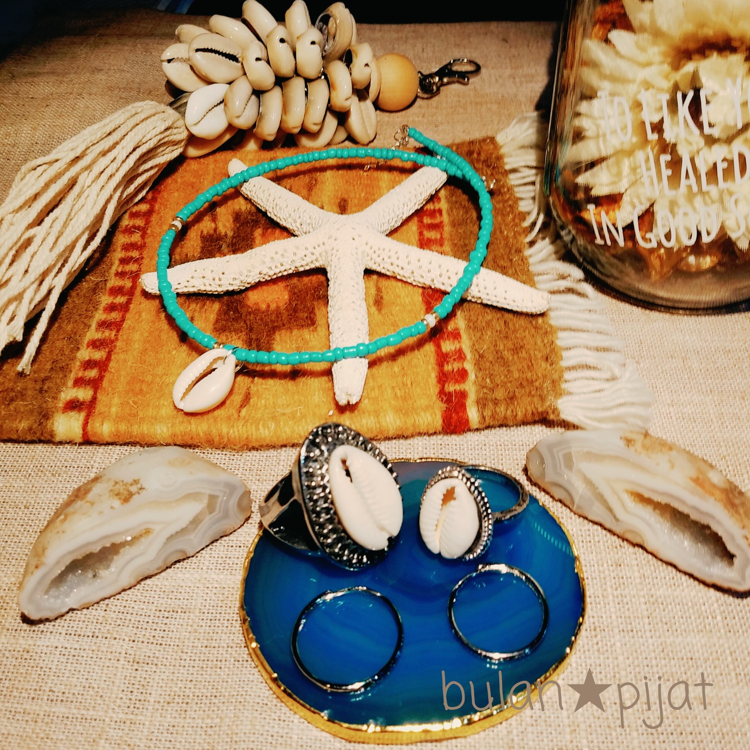 タカラ貝とウッドビーズとコットンロープのシンプルナチュラルキーホルダー