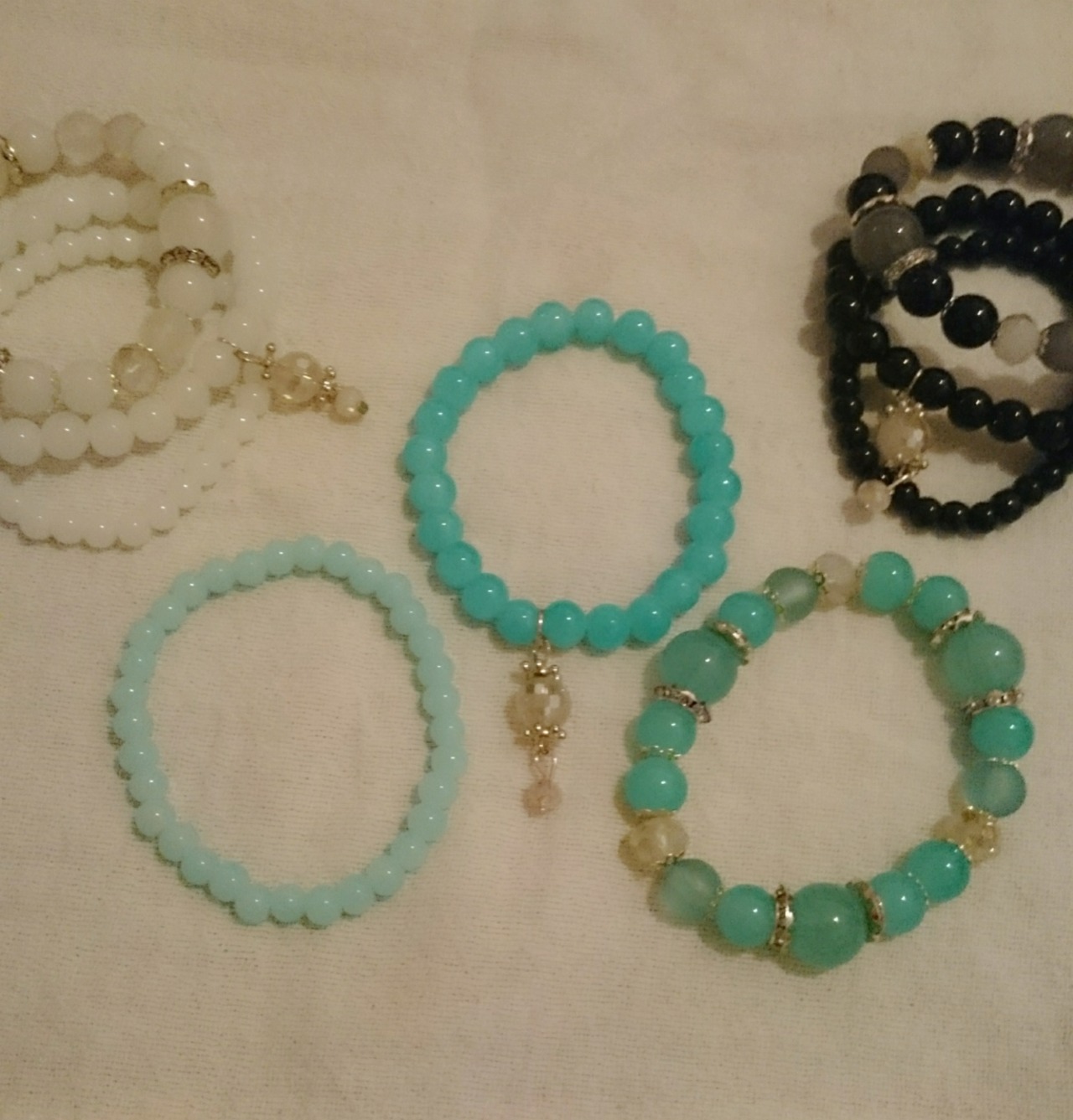 6mm珠ブレスレット、8mm珠ブレスレットにチャーム、12mm珠と10mm珠のブレスレットの3点セットです