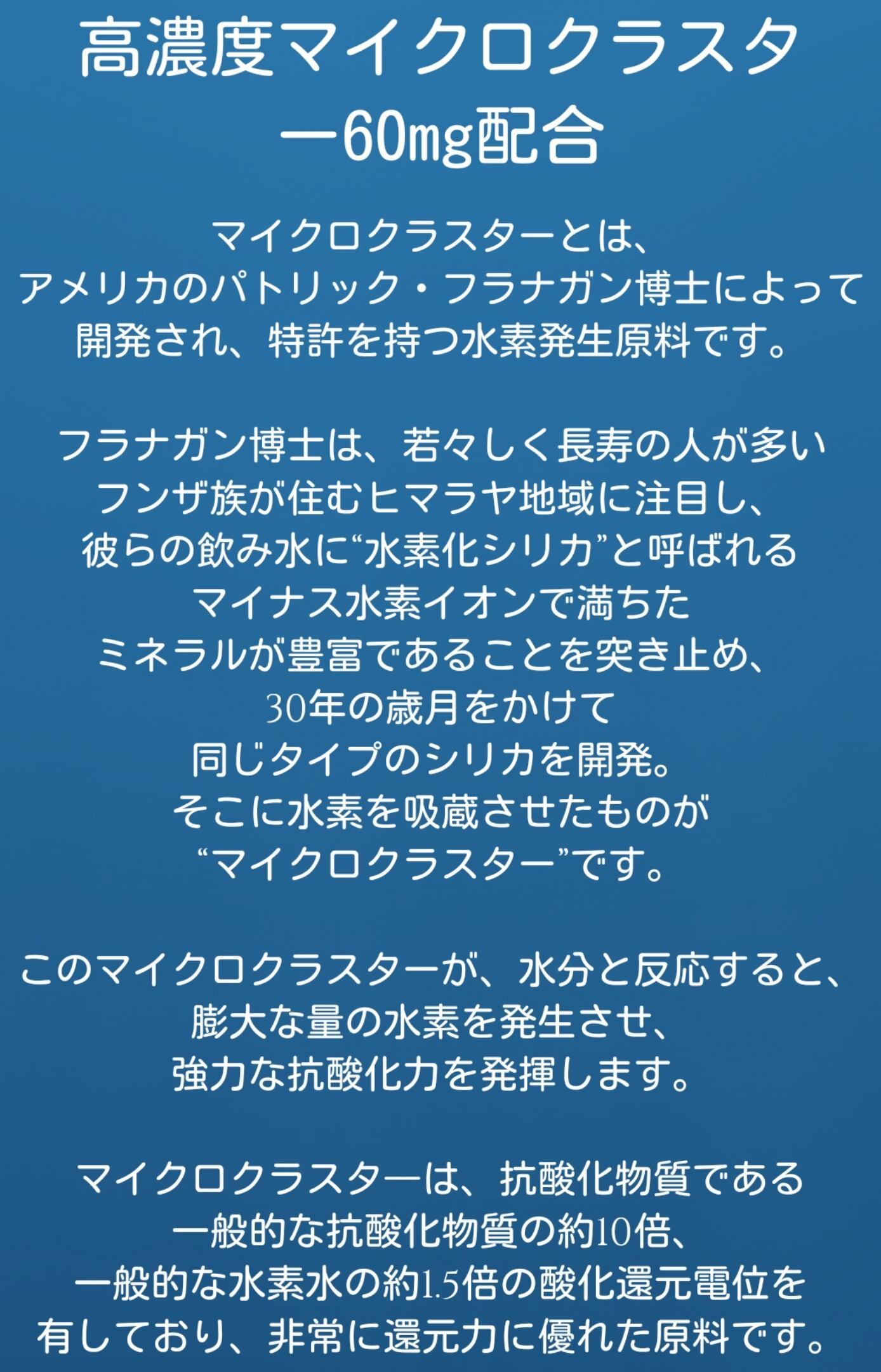 高濃度 水素 サプリメント 高濃度マイクロクラスター60mg配合 自宅で簡単 水素水 話題のシリカ