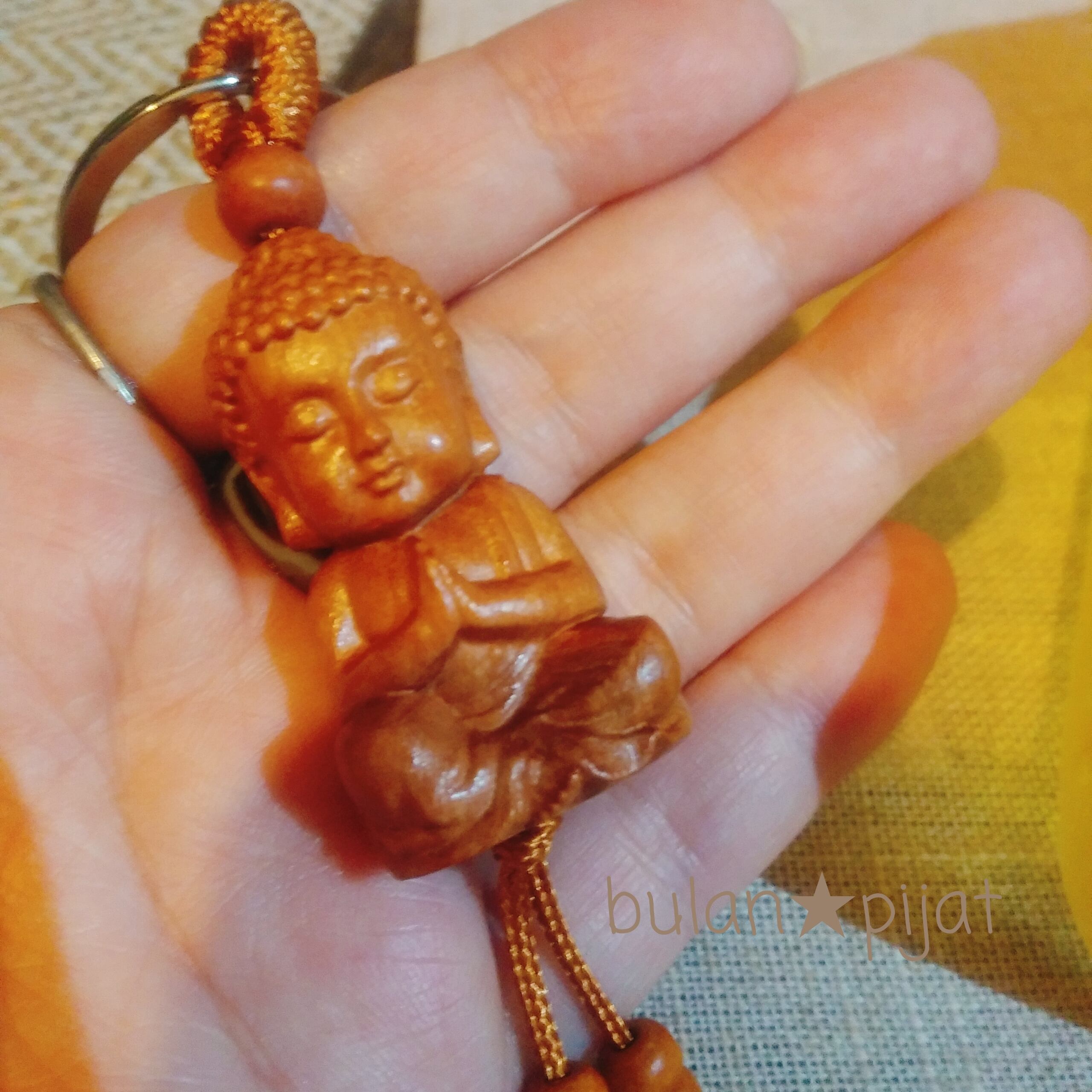 お祈り大日如来 マホガニー 瞑想 桃花心木の彫刻キーホルダー