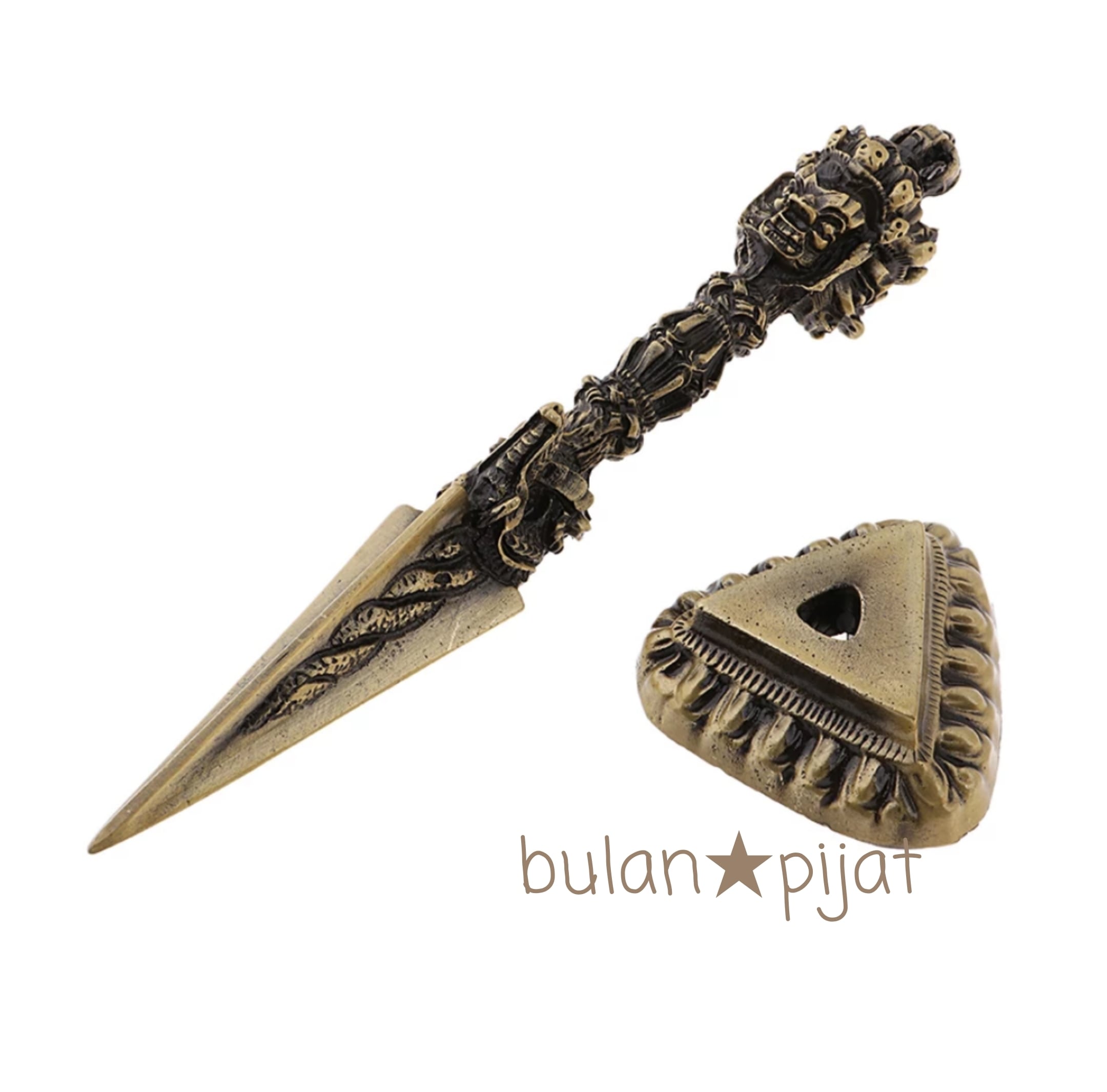 結界を張るためにの4本を四隅に打つ呪術的な杭とされ、金剛不壊の力を持ち、魔王といえども結界に踏み入れないよう修行者を守護したとされ、霊的な結界を張る法具・邪気・悪気の類を建物または部屋に入れなくするチベット密教法具です。