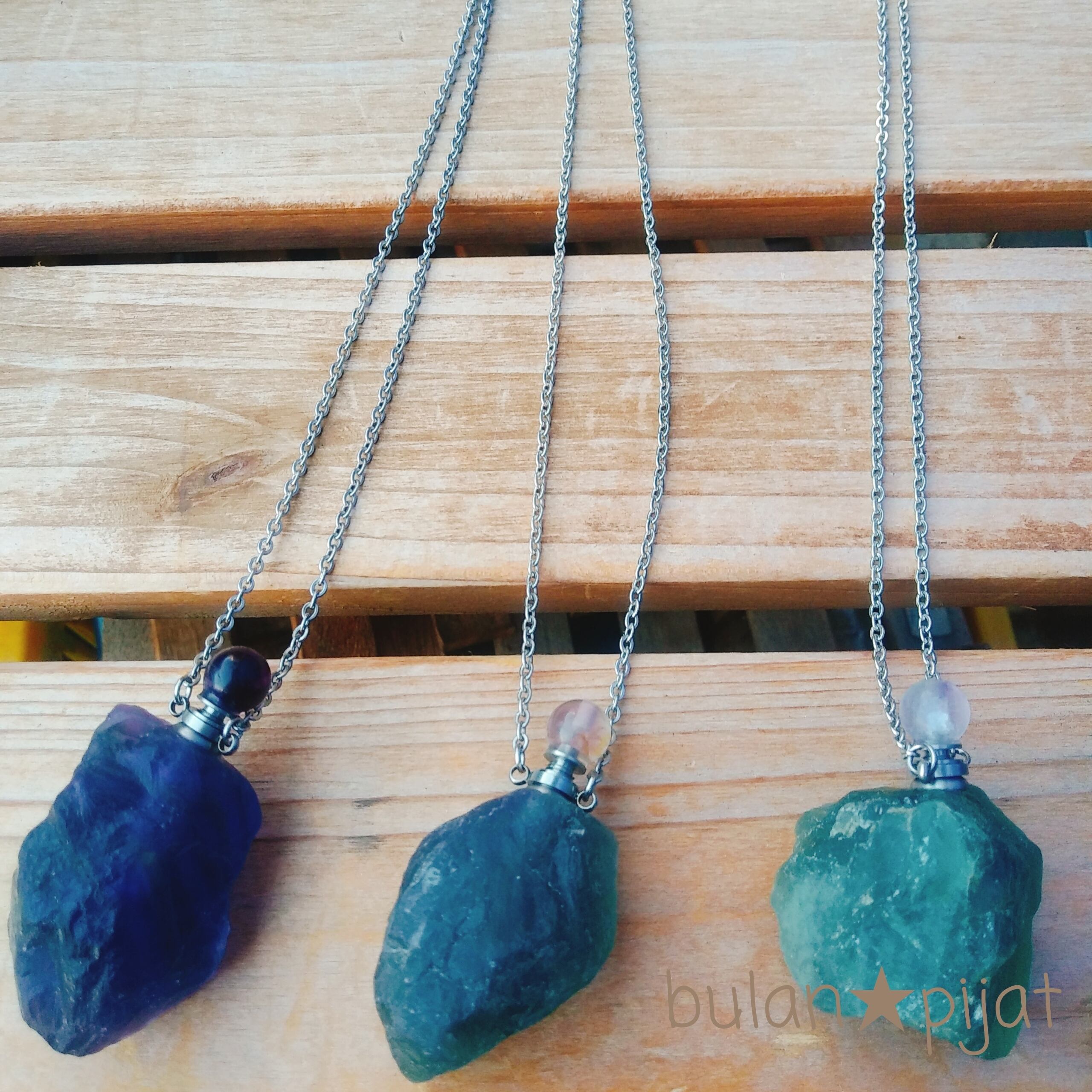 蛍石の原石をそのままアトマイザーネックレスにしました