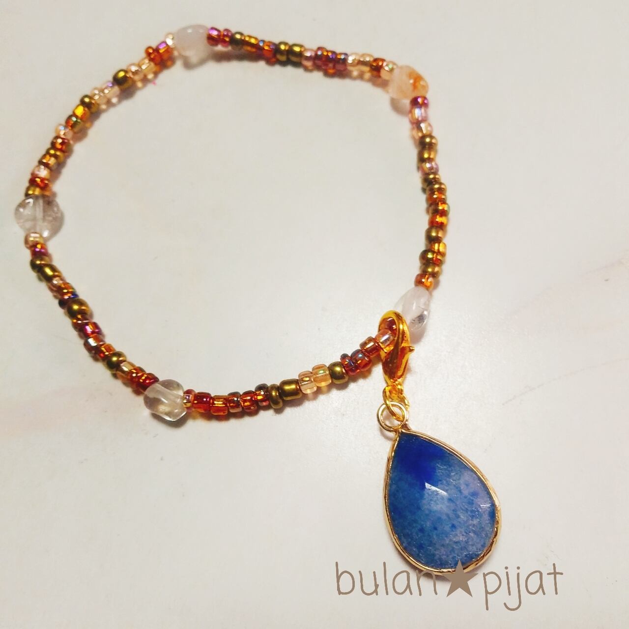 天然石ソーダライトチャーム付き ルチルクォーツとビーズブレスレット ハウルアクセサリーのイメージのネックレスを【ブレスレット】に