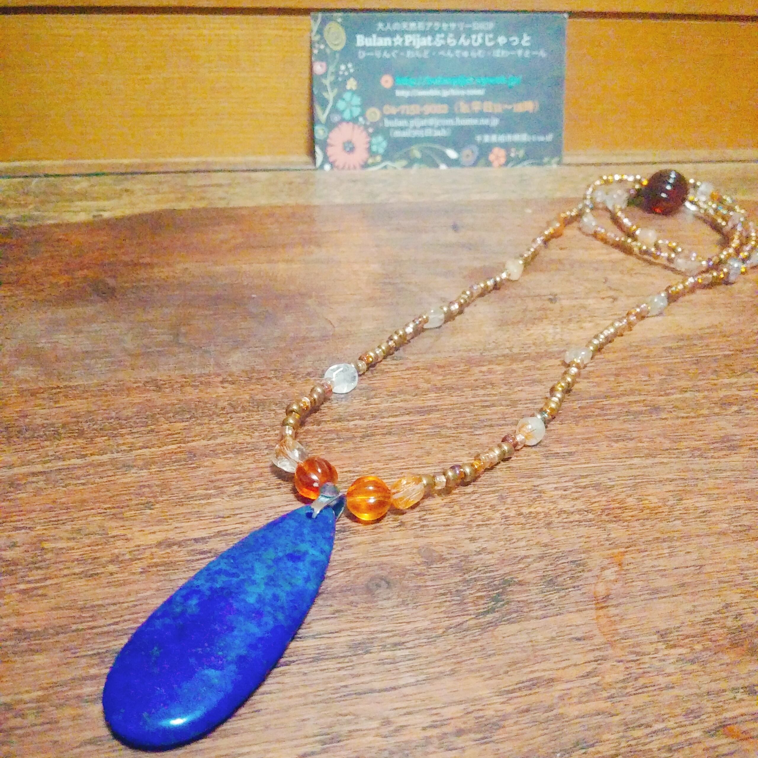 ラピスラズリペンダント5cm×ルチルクォーツとビーズネックレス70cm