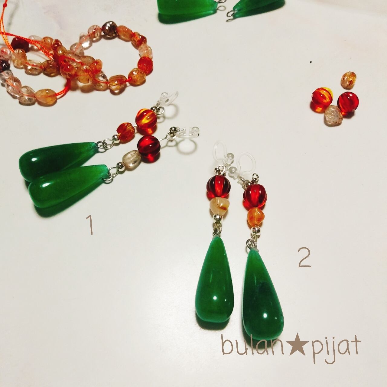 好評のルチルクォーツを入れた天然石のイヤリングです