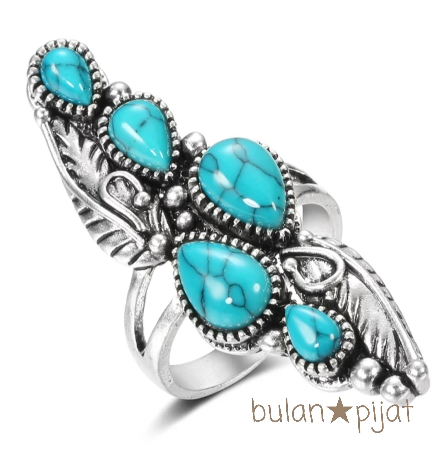 染めハウライト 実りの植物イメージ蔦リング ターコイズカラー指輪