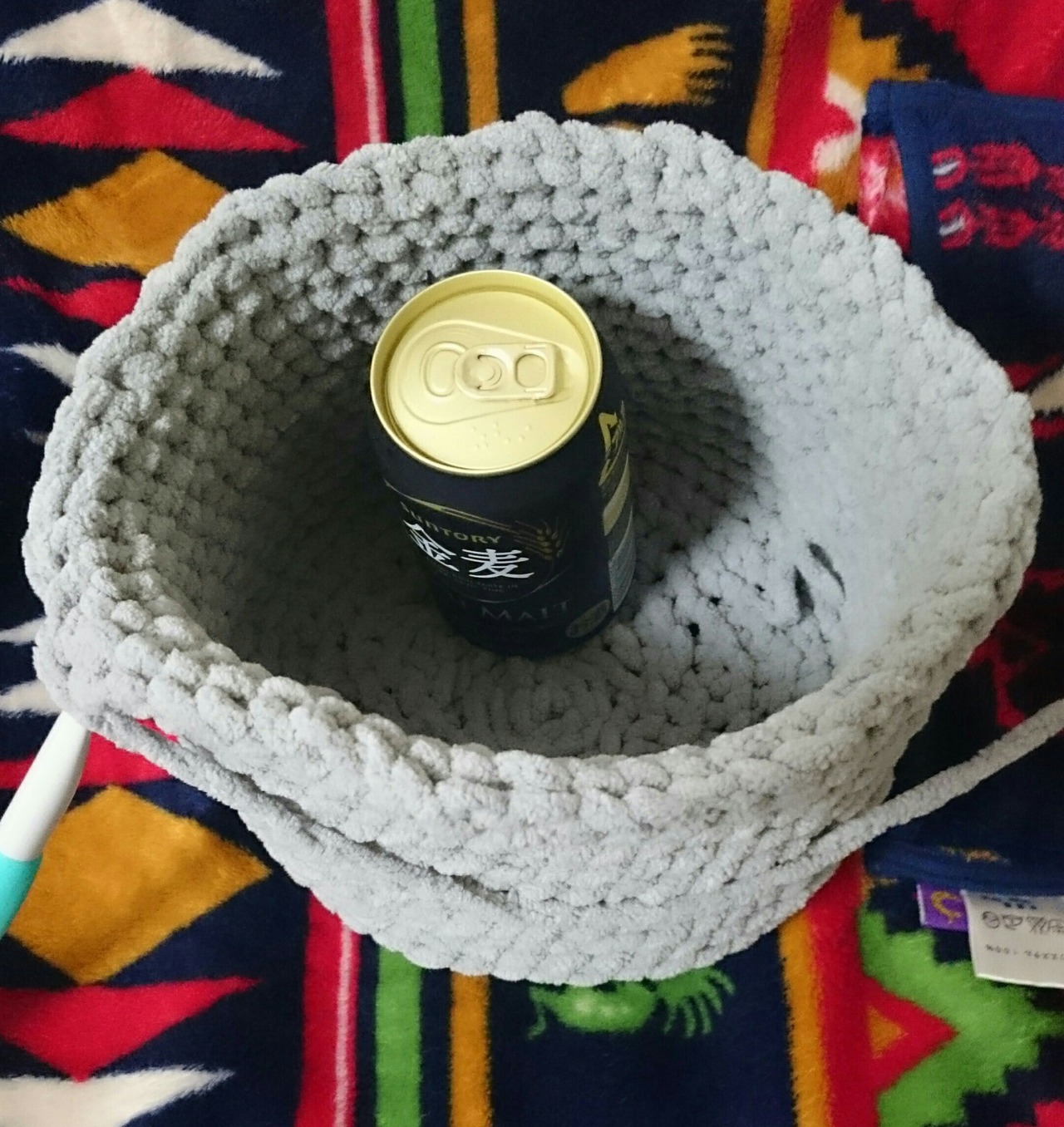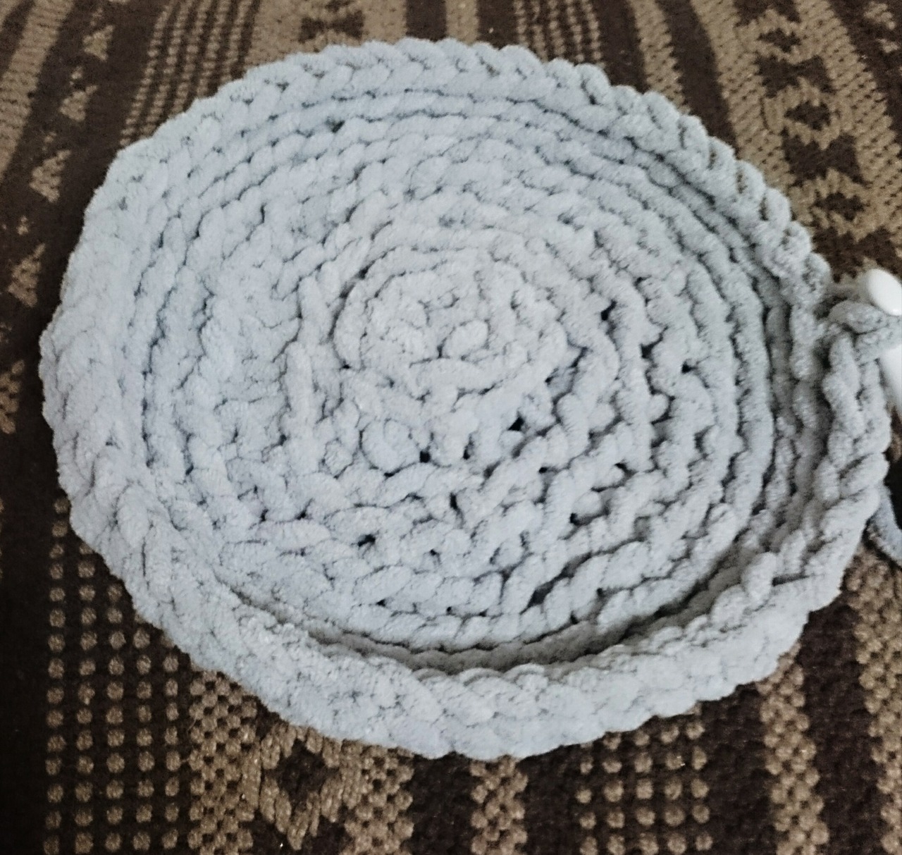 ブラジル製のかわいいモール糸グレーを見つけたのでアクリルで編んだ丸底のトートバッグです。