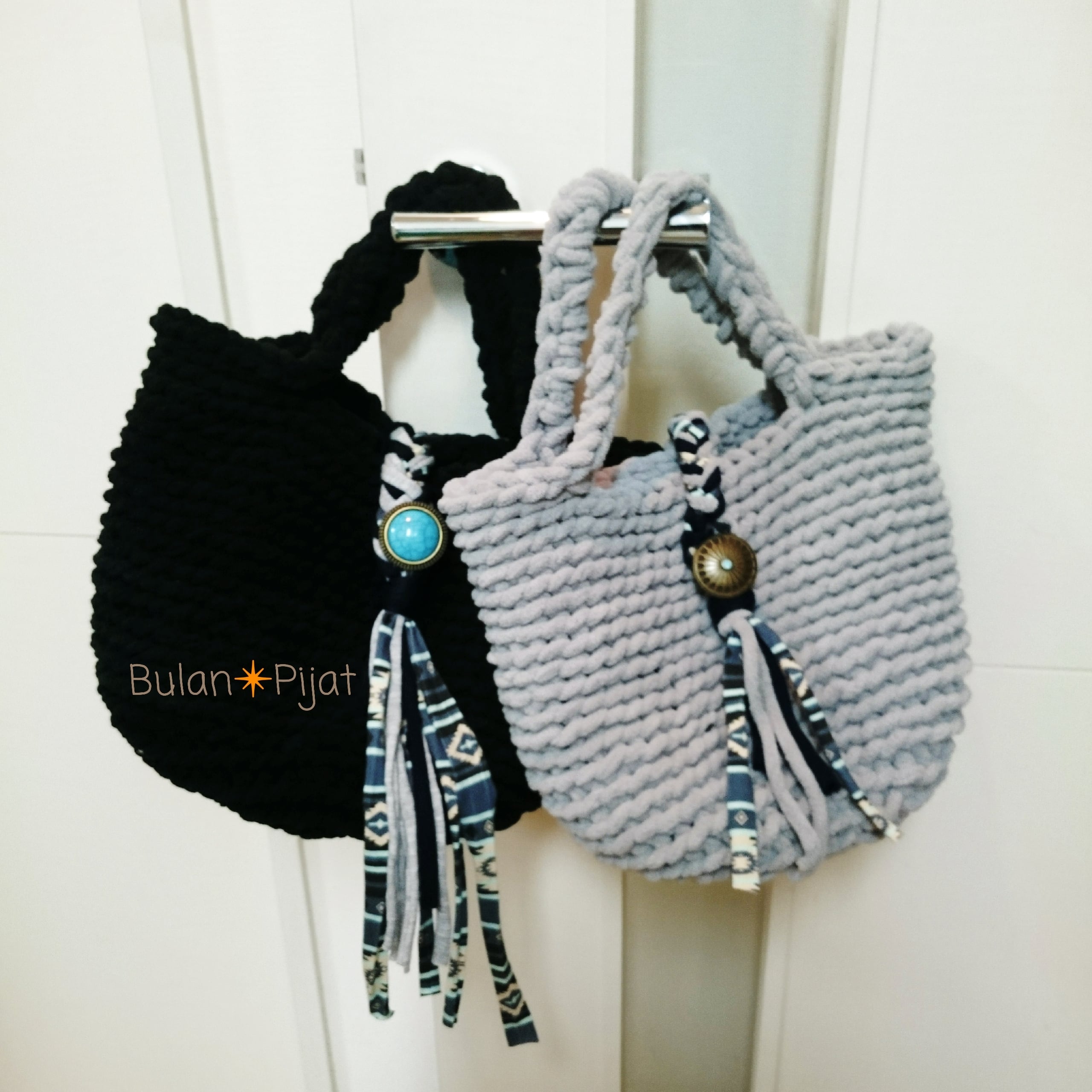 伸縮性・柔軟性に富んだ超極太糸トートフリンジバッグ。