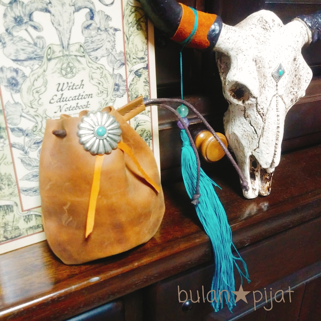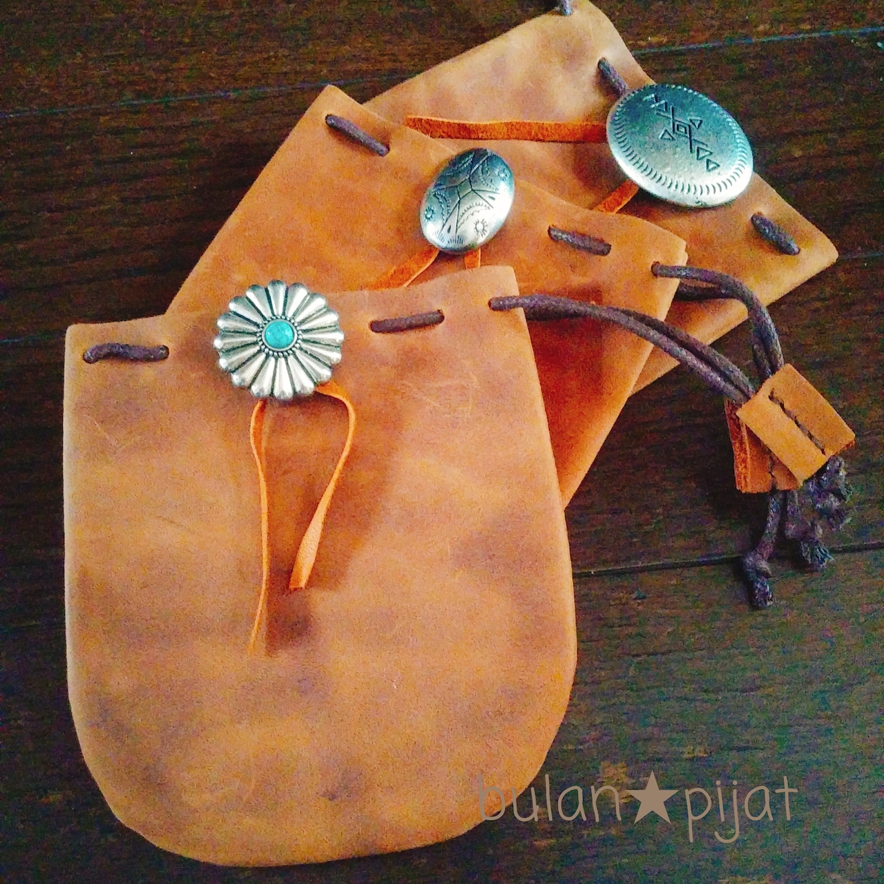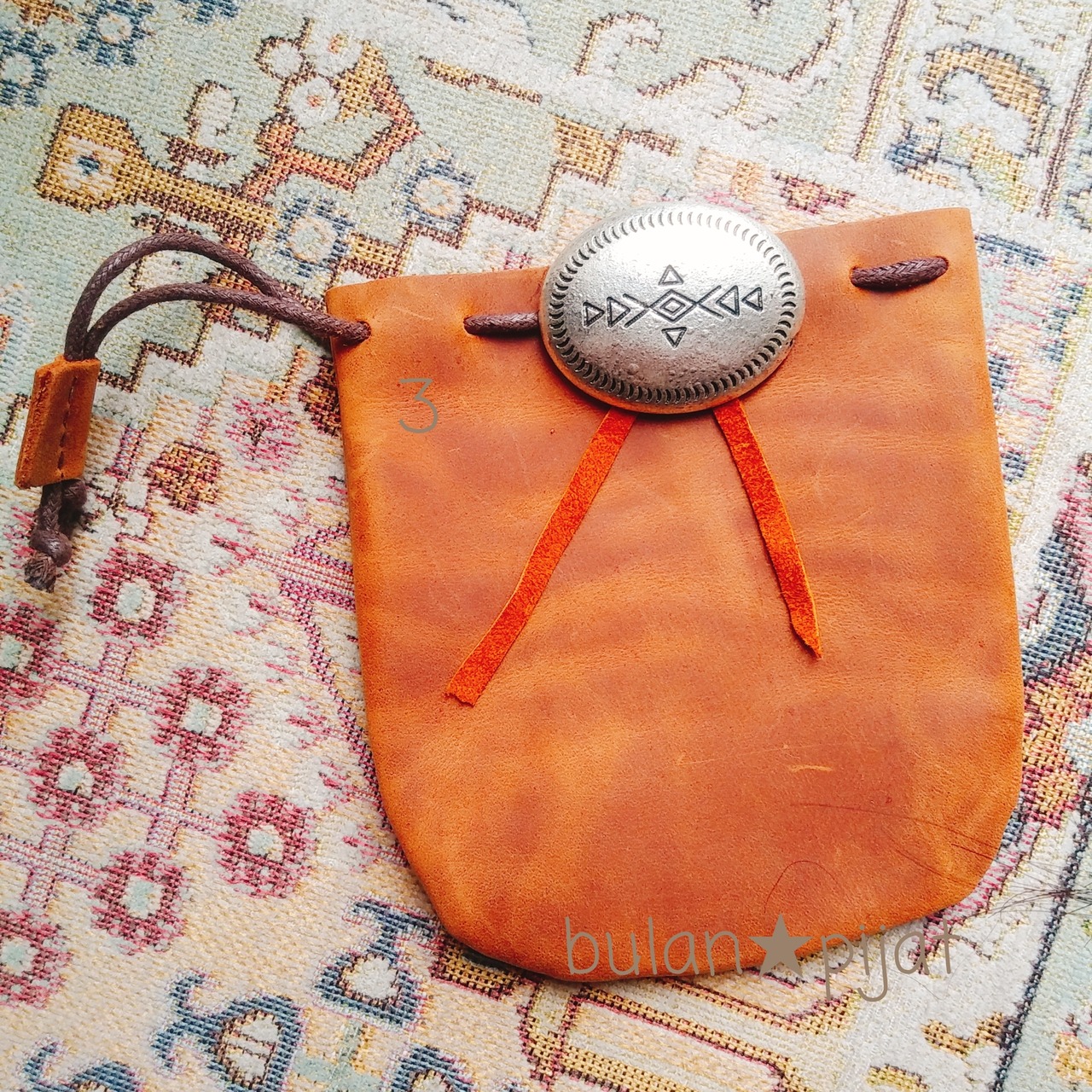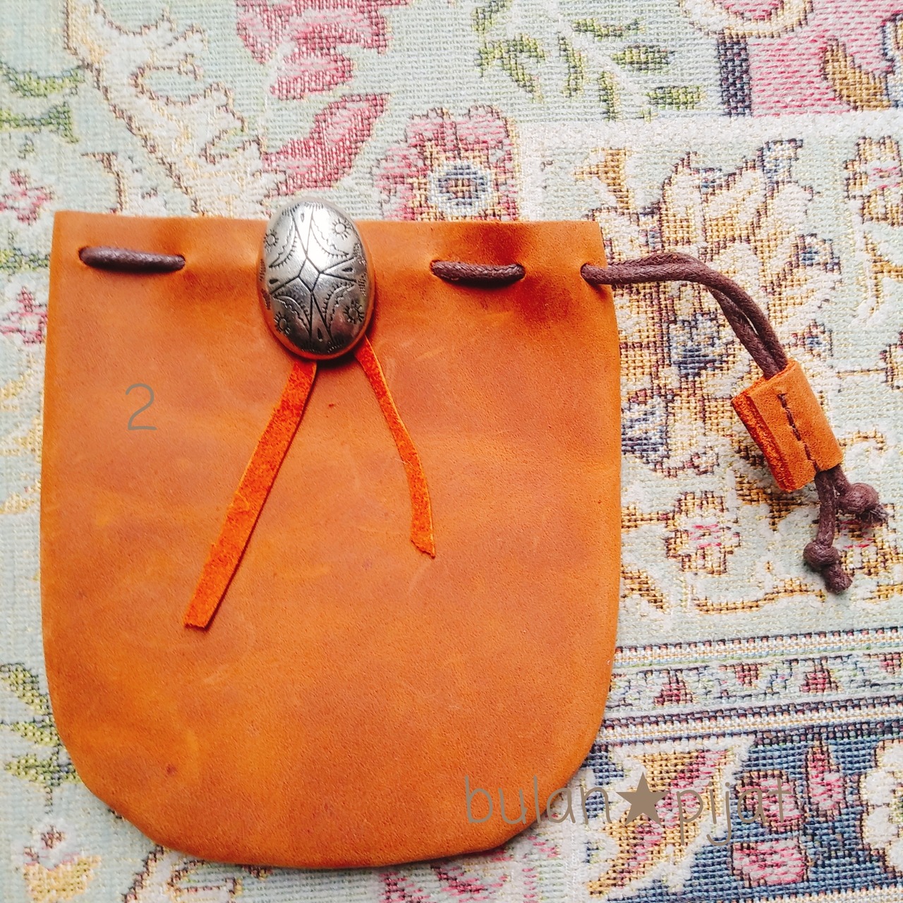 コンチョ×本革ポーチ12×11cmの巾着ポーチです
