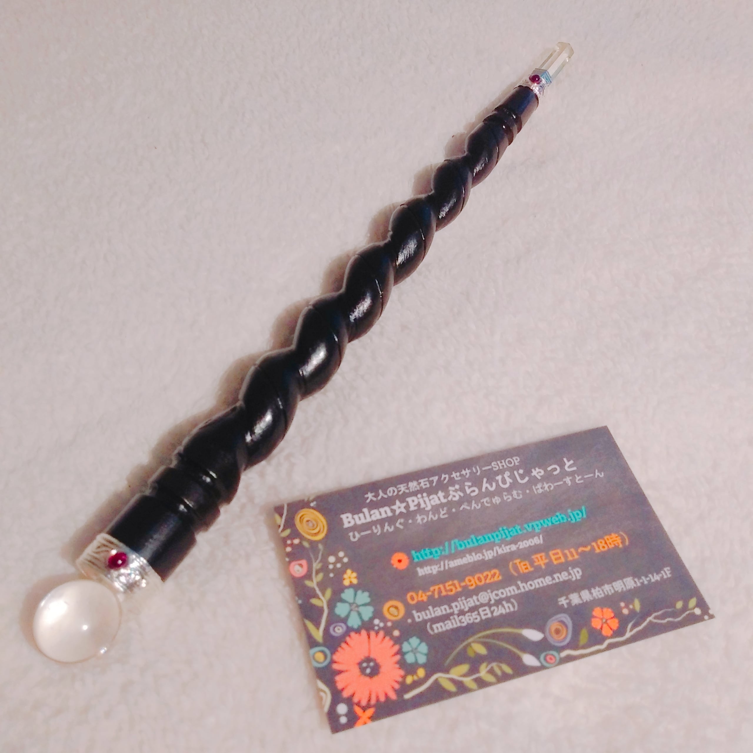 ローズウッドワンド(ニスあり)23cm…水晶珠2cm、水晶ポイント約3,5cm、計28,5cmのの最強ワンドです