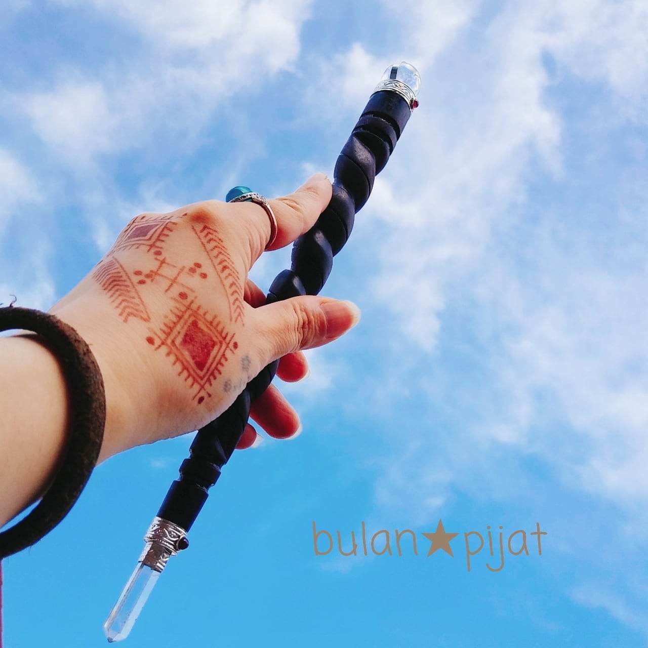 【送料無料】28cm水晶 ローズウッドワンド カスタムワンド ツイストrosewoodwandヒーリングワンド魔法の杖 本紫檀 高級希少