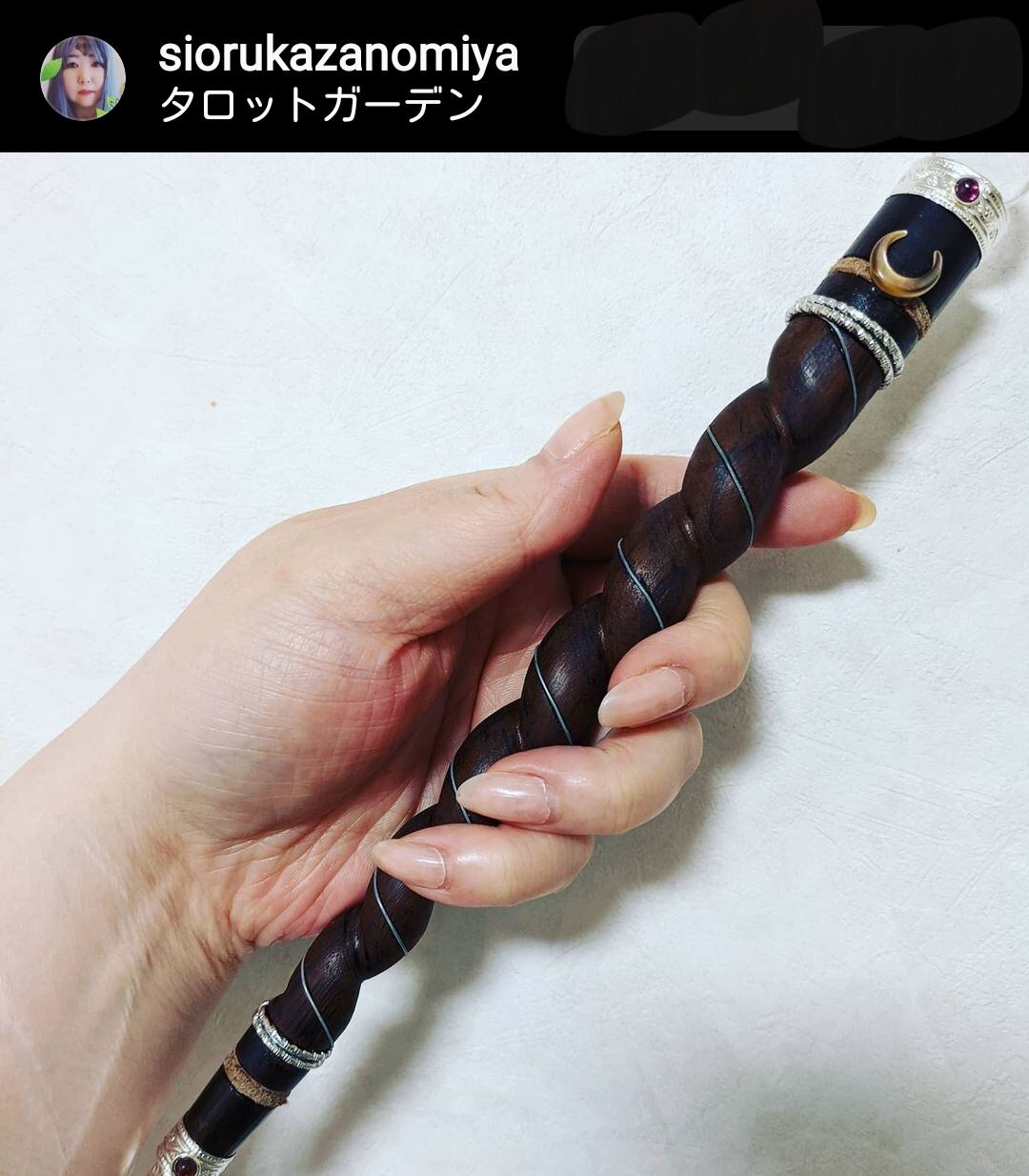 お月様シェルワンド28cm水晶 ローズウッドワンド ツイストrosewoodwandヒーリングワンド魔法の杖 高級希少