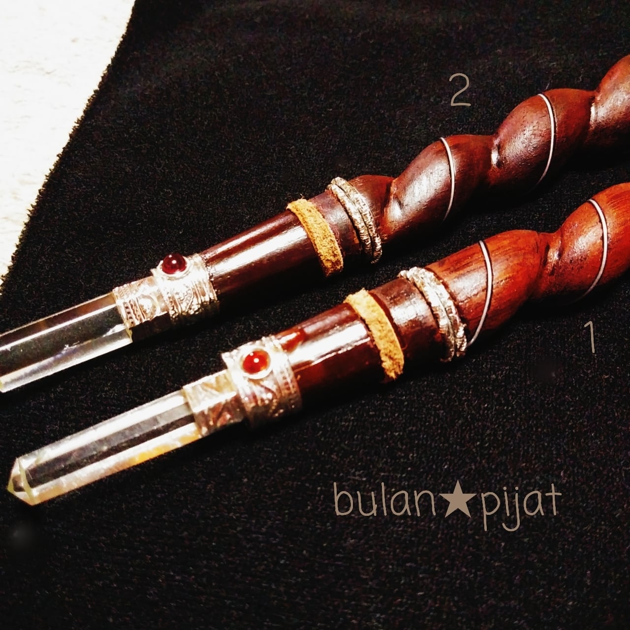 ローズウッドワンド23cm…水晶珠2cm、水晶ポイント約3,5cm、