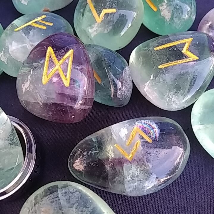 天然石フローライト ルーン文字 オラクル天然石 クロス付き ルーンストーン