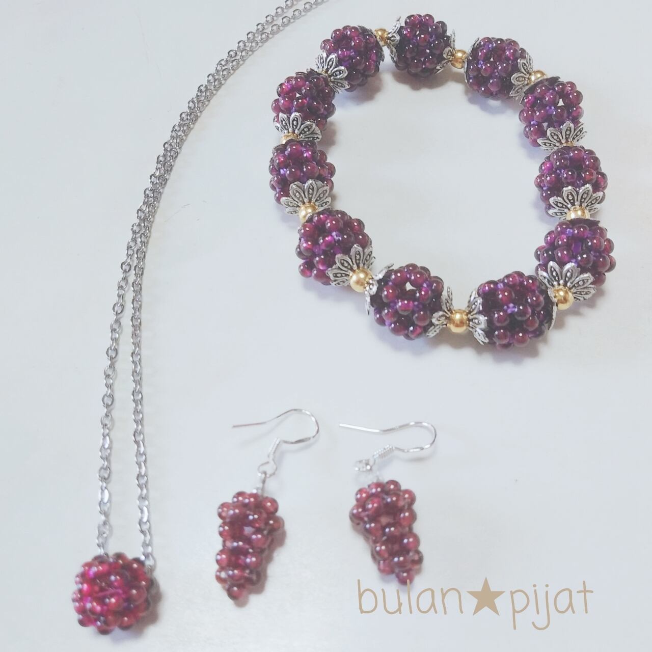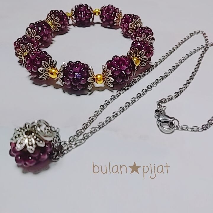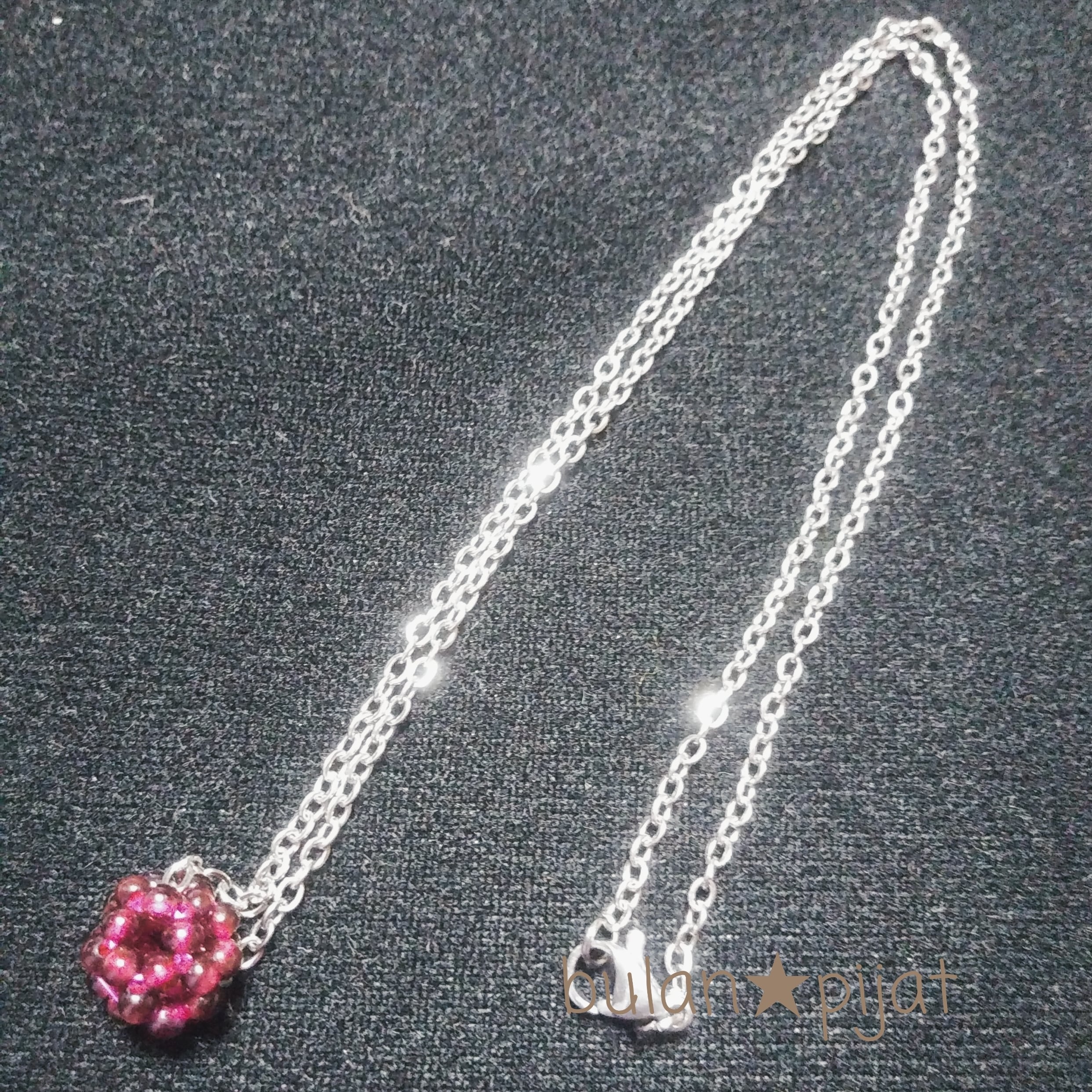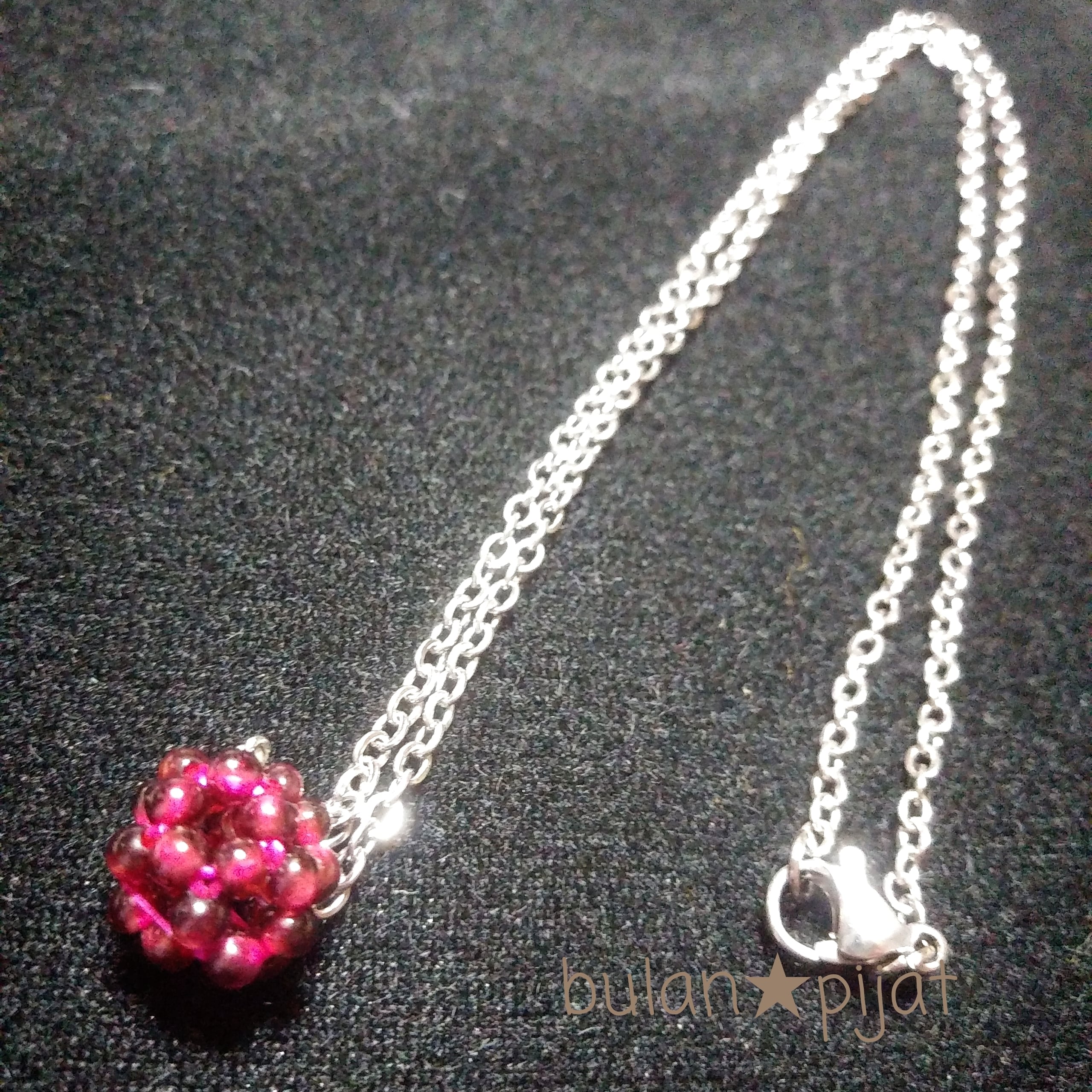 3mm珠ガーネットを丸く合体してラズベリーのようにしたプチネックレスです