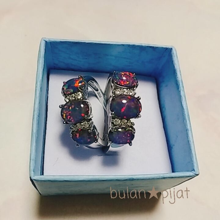 ブラックエチオピアンオパールリング 三連 天然石指輪