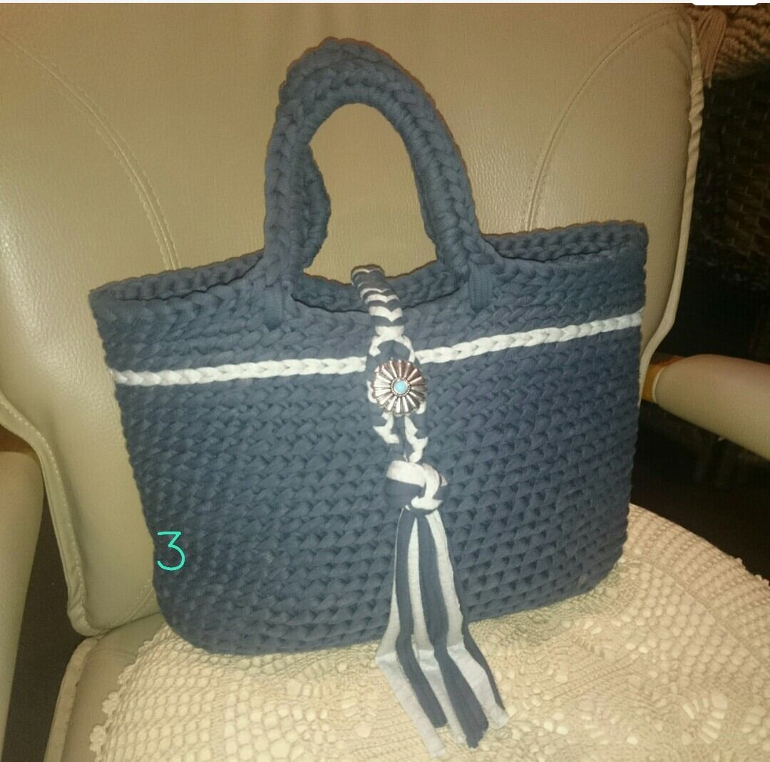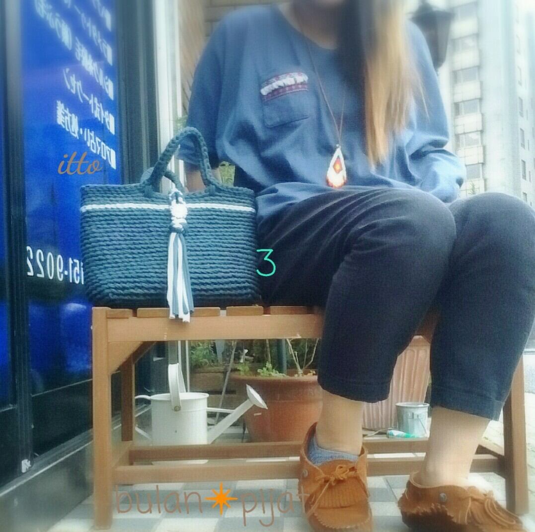 イットヤーン@itto0113 のデニム 風ムラ染め なデニムヤーン 渋い カラー120mを使用した人気の トートバッグです
