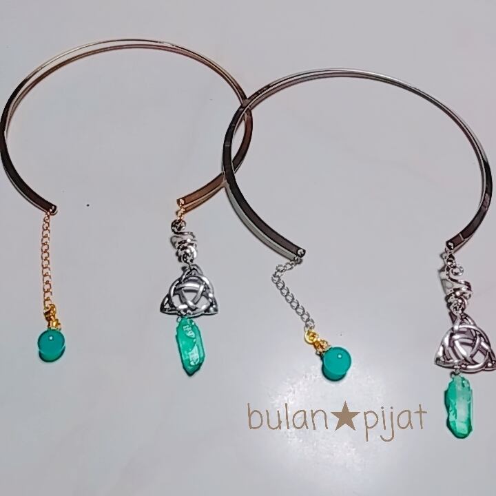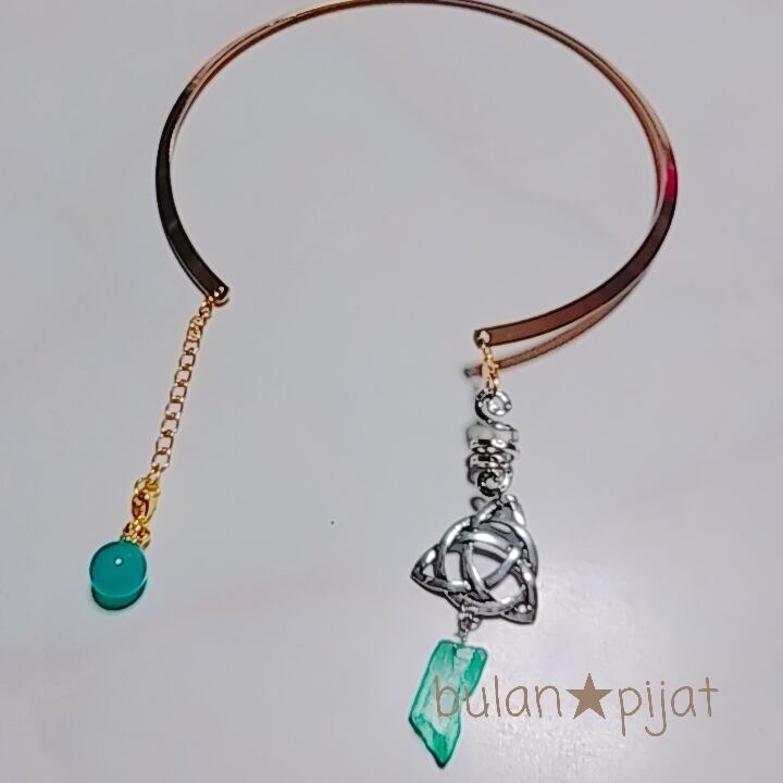 ゴールドチョーカーにはゴールドアイスアマゾナイト×シルバースパイラル三位一体染水晶が着いています
