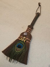 魔よけのほうき飾り アメジスト箒 孔雀ホウキ 約25cm 魔女のほうきリース フェザー