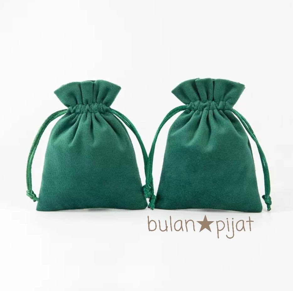 グリーンの巾着ポーチと、