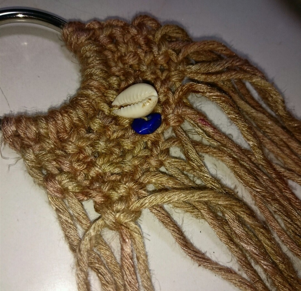 マクラメ編みフリンジキーホルダー 天然石バッグチャーム