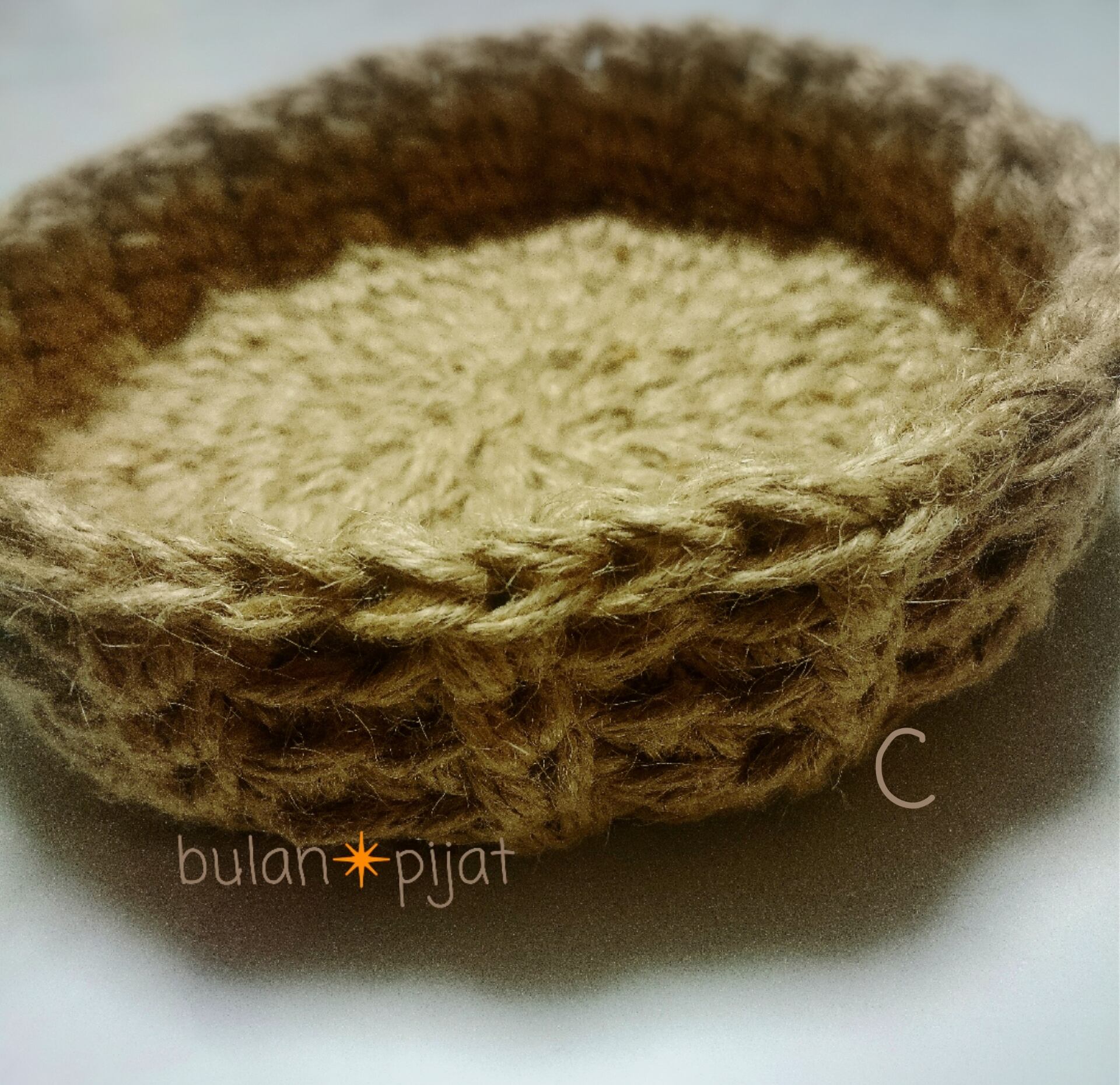 手作りバッグや小物入れをご自身でDIYするように麻紐で丸底+側面だけ編みました